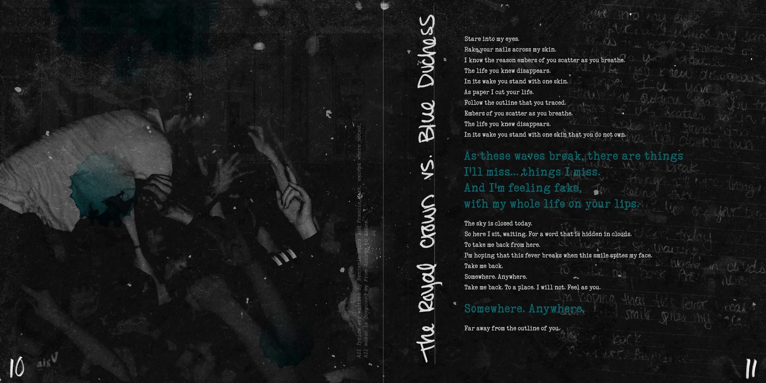 A design concept for the 20th Anniversary Edition release of “Too Bad You’re Beautiful” by From Autumn to Ashes. Each page of the 20+ page album liner notes was individually crafted using a variety of mediums, blending mixed-media collage with custom, hand-brushed typography—capturing the raw energy and artistic spirit of the album.